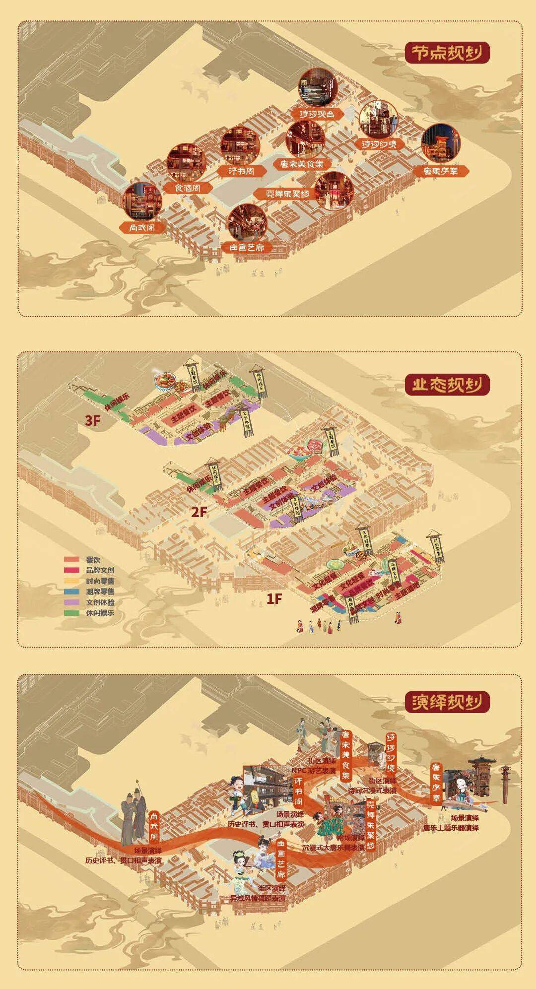 围绕主题故事结构,规划形式各异的游客“引流点”(如NPC演绎、主题打卡区)、“驻留点”(如文化参与体验区)、“稳流点”(如特色餐饮/零售)等空间闭环,助力“文商旅”商业多维运营,最大化激发商业空间互动价值。