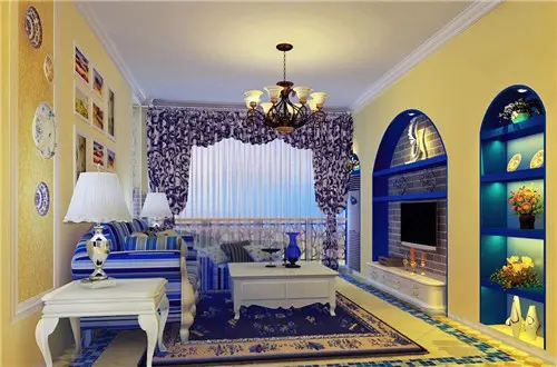 地中海风格在国外是非常常见的一种装修风格,其中最有特色的是它的拱形门以及蓝白色为主的颜色搭配,非常适合浪漫主义。